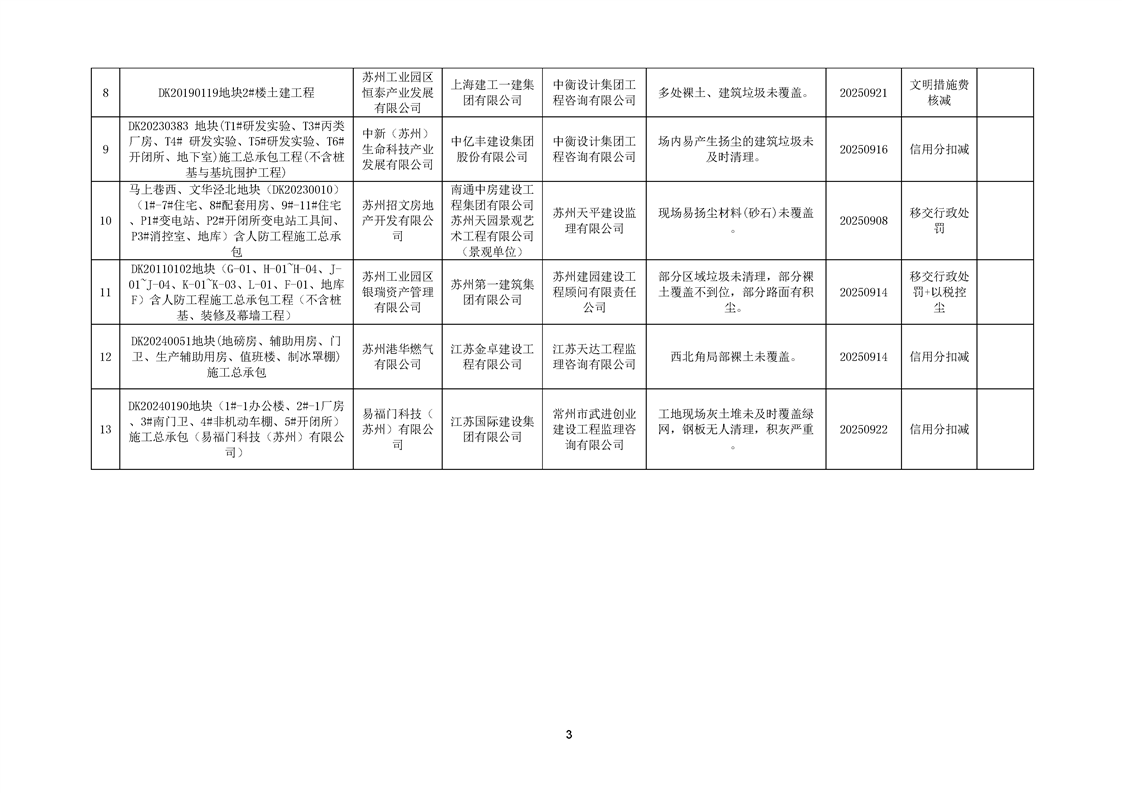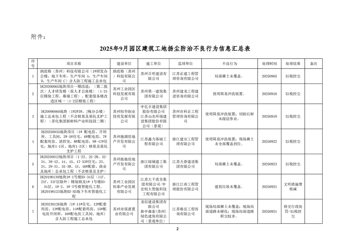 園區質安站關于2025年9月份園區建筑工地揚塵防治不良信息的通報