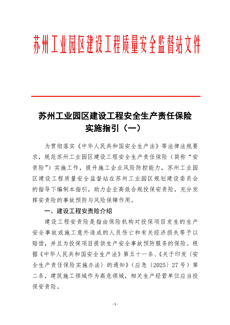 蘇州工業園區建設工程安全生產責任保險實施指引(一)