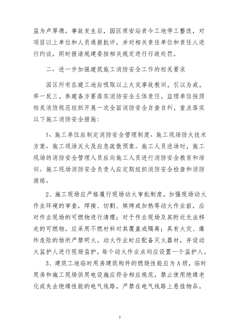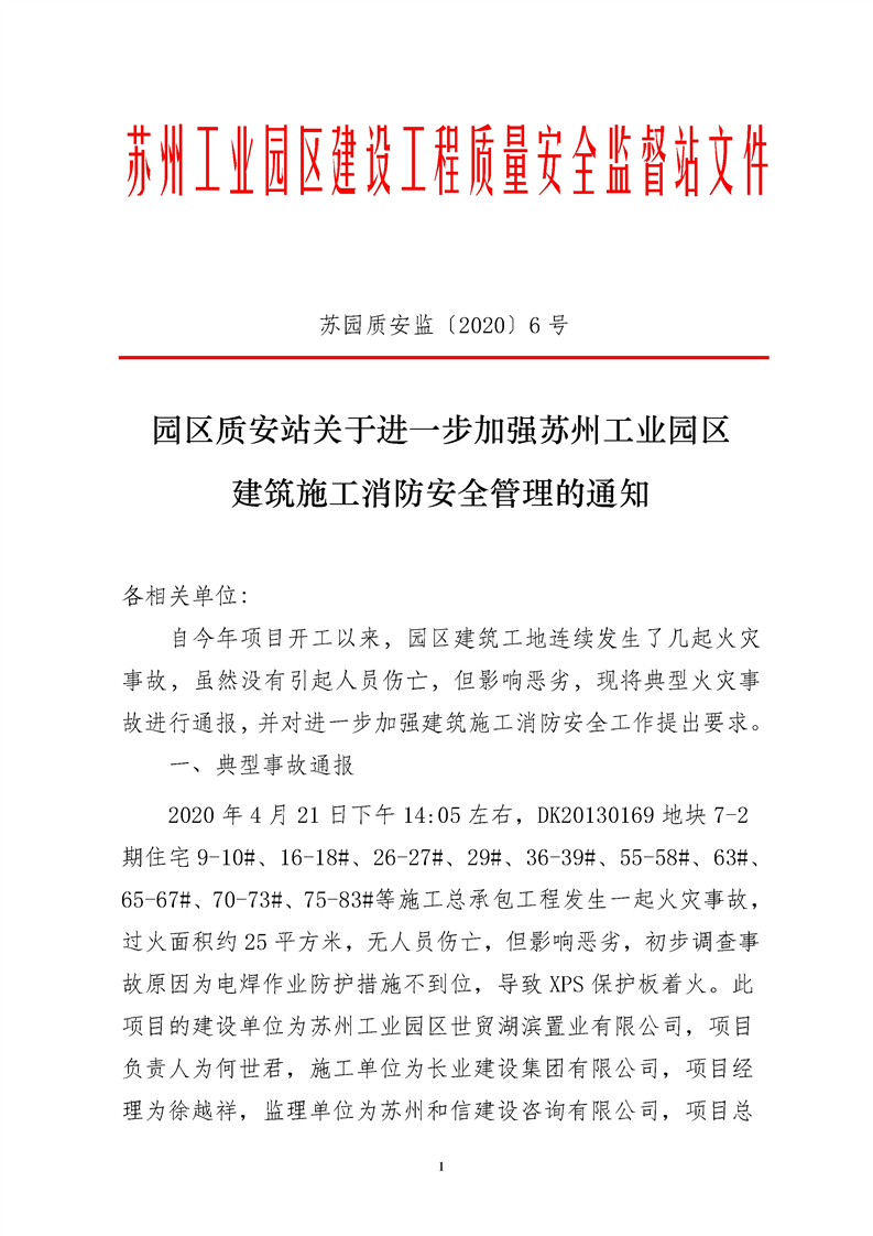 園區(qū)質安站關于進一步加強蘇州工業(yè)園區(qū)建筑施工消防安全管理的通知