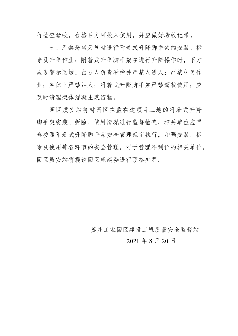 園區(qū)質(zhì)安站關(guān)于進(jìn)一步加強(qiáng)附著式升降腳手架安全管理的通知
