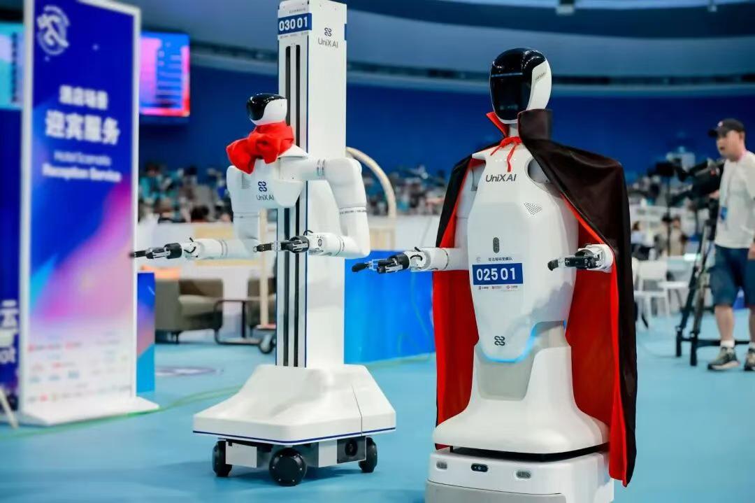 2025年第二季度,優理奇正式對外宣布量產計劃,并迅速推進生產基地建設和供應鏈整合。在2025年世界機器人大會(WRC)和2025年世界人工智能大會(WAIC)兩大頂級展會上,優理奇攜全尺寸人形機器人震撼亮相,以多種服務業真實場景演示為核心,直觀展示了機器人在實際應用中的高效執行力與靈巧交互能力。現場的真實操作讓觀眾切身感受到人形機器人“能用、好用、想用”的價值,也讓行業客戶看到了其在服務業的巨大潛力。
