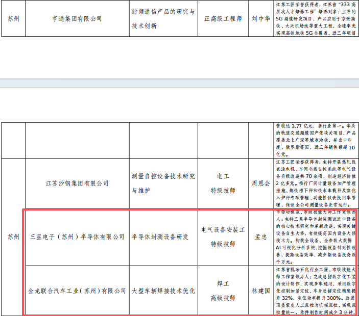 近日,江蘇省人社廳發(fā)布《關(guān)于2025年首席技師人選名單的公示》,經(jīng)企業(yè)自主評審、區(qū)市初審?fù)扑]、省級復(fù)核后,全市6名技能大師脫穎而出,取得“新八級工”職業(yè)技能等級認(rèn)定最高級別——首席技師,園區(qū)2人上榜,占全市1/3。