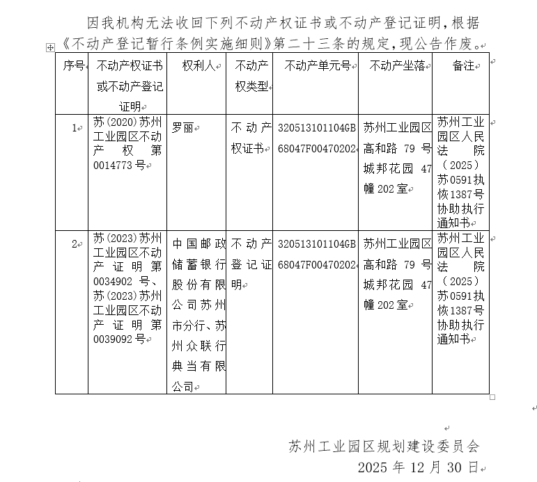 不動產權證書/登記證明作廢公告蘇園 證廢字2025(0200)號(城邦花園47幢202室)