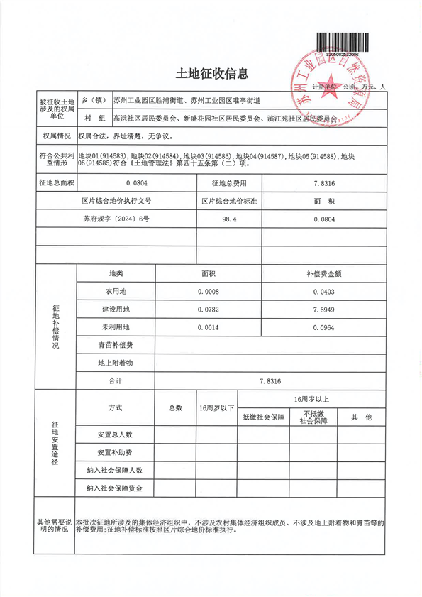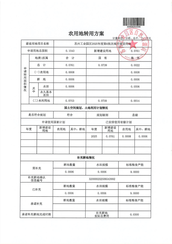 蘇州工業園區2025年度第6批次城市建設用地-報批材料