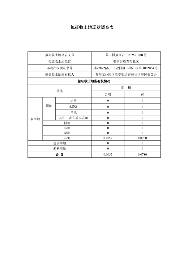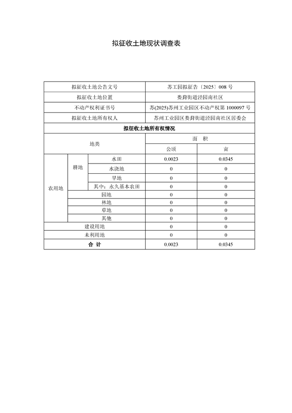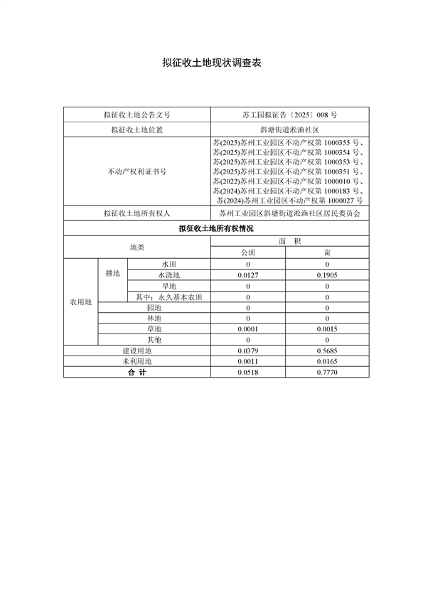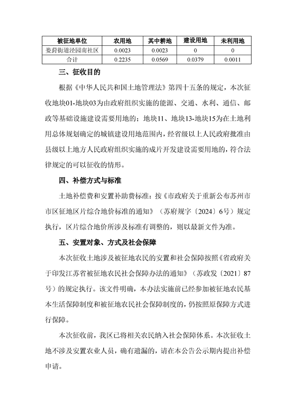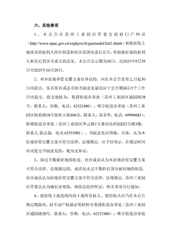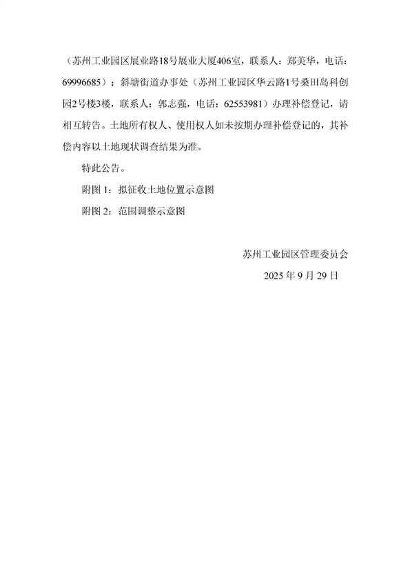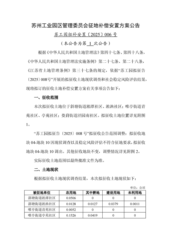 蘇州工業園區2025年度第7批次城市建設用地--蘇州工業園區管理委員會征地補償安置方案公告(蘇工園征補安置〔2025〕006號)