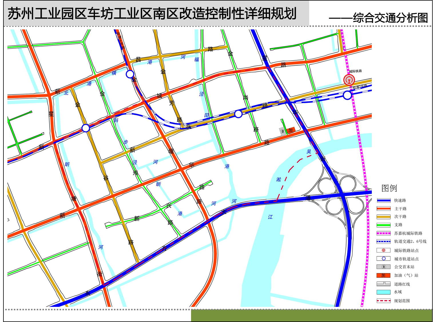 次干路:“一橫兩縱”,“一橫”指新慶路,“兩縱”指金谷路、金芳路。