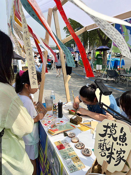 當天,來自區(qū)內高校、企業(yè)帶來非遺作品、輕食飲品、休閑文旅、運動裝備、文創(chuàng)周邊等,共同組成了多元業(yè)態(tài)匯聚的湖畔市集,吸引了不少市民停留駐足、拍照打卡。