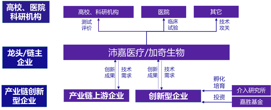 面對高端醫療器械領域的“卡脖子”難題,沛嘉醫療深刻認識到,科技攻關不是“獨角戲”而是“大合唱”,于是聯合加奇生物、蘇州思萃介入醫療技術研究所、智纖科技、沛心科技、復旦大學、獨墅湖醫院等,共同組建蘇州市介入醫療技術創新聯合體,圍繞生物醫用材料、醫療智能診斷等多項“卡脖子”技術和關鍵核心技術開展協同攻關與國產替代。其成員架構,既實現了園區內的空間集聚效應,又通過跨區域合作形成長三角聯動,極大促進了創新資源的流動與共享。