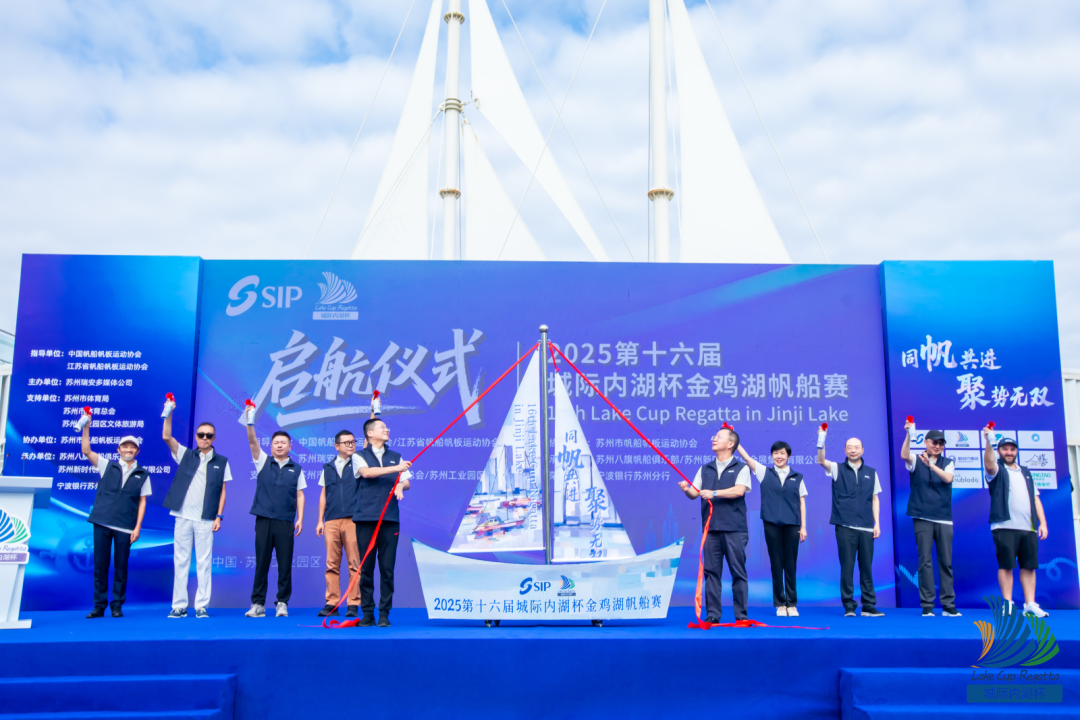 蘇州市體育局局長闕明清,蘇州工業(yè)園區(qū)黨工委委員、管委會副主任、宣傳部部長朱江,中國帆船帆板運動協(xié)會副秘書長兼事業(yè)發(fā)展二部部長胡博,蘇州工業(yè)園區(qū)宣傳部副部長何雯,蘇州新時代文體會展集團董事長、總裁季詡淙,寧波銀行蘇州分行副行長王煒,國際仲裁PilsungLe(李必勝)蘇州工業(yè)園區(qū)八旗帆船俱樂部董事陳望宇,城際內湖杯創(chuàng)始人陳望君等領導和嘉賓出席了啟航儀式。