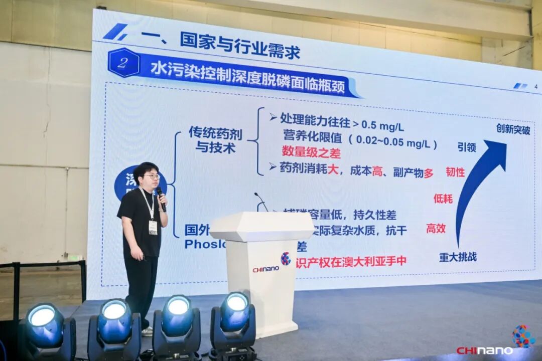 蘇州拓撲分子科技有限公司研發(fā)經理張濤,介紹了《基于納?互鎖捕磷劑的新型材料、裝備與技術保障體系的建立》。該公司科研團隊經過對金屬中心的對離子不斷地調控,發(fā)展了以碳酸根為對離子的新型吸附活性位點,并利用結構相似性提高磷吸附自發(fā)性、交換配位可逆性和pH適用范圍,降低磷吸附與脫附的活化能壘,拓展了磷吸附劑的實用韌性,并突破了傳統(tǒng)認知。