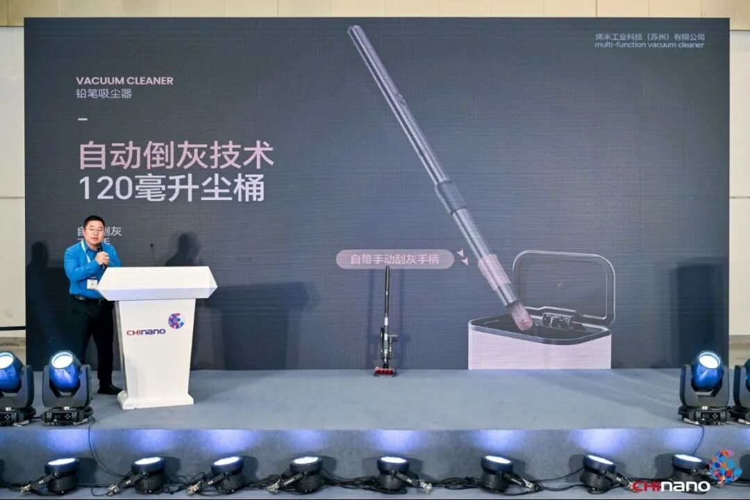 烯米工業(yè)科技(蘇州)有限公司研發(fā)總監(jiān)耿軍政,介紹了《基于碳納米材料開發(fā)的鉛筆吸塵器發(fā)布介紹》。烯米工業(yè)擁有全球唯一的自有核心技術,其產品采用在高分子材料領域占據(jù)不可替代金字塔頂端地位的聚酰亞胺作為基材。基于此復合材料做基材添加,做出高強度、高模量的高性能的碳纖維材料并在此材料基礎上開發(fā)出靈巧輕便、纖細如筆式的新一代清潔家電。此外,該公司利用此復合材料制造出的核心原料——高品質石墨烯粉體,制造出齒輪箱專用潤滑油,專為應對齒輪在超高轉速工況而設計的高性能潤滑解決方案。將此專用潤滑油用在其新一代清潔家電上,攻克了在密閉環(huán)境中高轉速電機和齒輪箱的散熱問題。