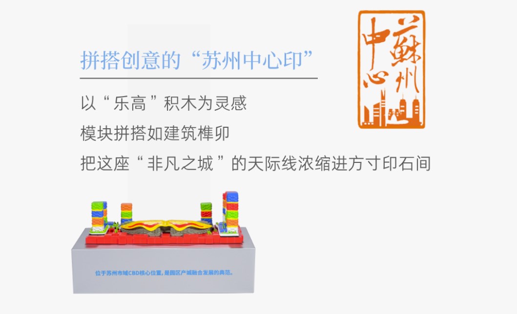 “篆刻是在方寸之間去創(chuàng)造一個世界,建筑則是在天地之間去雕刻一枚印章。”啟迪設(shè)計集團(tuán)建筑師張筠之帶來了用樂高積木搭建的《蘇州中心》印章。這件充滿童真與趣味的作品,用五彩的積木堆疊出園區(qū)的活力、青春與探索精神。在她看來,園區(qū)本身就是一幅宏偉的時代畫卷,每一座錯落起伏的建筑,都是深深印刻在這片土地上的印章,鐫刻著時代的價值觀與審美,成為留給后人的文化記憶。