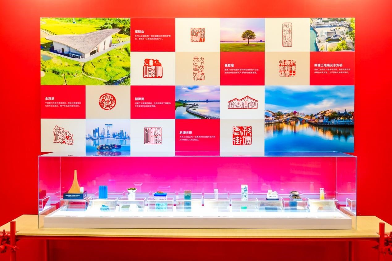 在“印記園區(qū)”部分,94枚全新創(chuàng)作的印章形成“領(lǐng)航擘畫”“志合山海”“吳風(fēng)湖韻”“勇立潮頭”“盛世江南”五大篇章,立體勾勒了園區(qū)的驚艷蝶變。其中,《發(fā)揮試驗示范作用》印章以DNA雙螺旋結(jié)構(gòu)象征生物醫(yī)藥、芯片造型代表人工智能,并結(jié)合碳納米六邊形的造型,將園區(qū)三大特色產(chǎn)業(yè)精準(zhǔn)呈現(xiàn);《鄰里中心》印章通過可轉(zhuǎn)動的設(shè)計,生動詮釋了社區(qū)共生、活力多元的園區(qū)生活理念;《金雞湖》作品中澄澈水體與印石相映成趣,成為生態(tài)園區(qū)最詩意的見證。