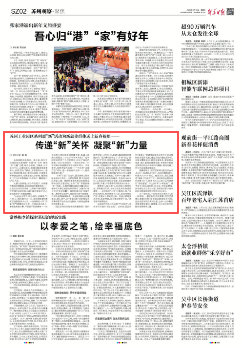 金雞湖畔年味漸濃。連日來,蘇州工業園區組織部圍繞“傳遞‘新’關懷凝聚‘新’力量”主題,聯合各街道、衛健委、公共文化中心、工青婦條線、新建元集團黨委等單位,在園區熱門景點、黨群服務中心、星騎士加油站等點位,面向快遞員、外賣騎手等新就業群體,密集推出義診體檢、便民理發、子女托班等服務70余場次,覆蓋超過5700人次。