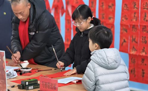 活動(dòng)室內(nèi),長(zhǎng)桌鋪開(kāi),墨香陣陣。社區(qū)邀請(qǐng)的書法老師和幾位擅長(zhǎng)書法的老黨員揮毫潑墨,為居民現(xiàn)場(chǎng)書寫春聯(lián)和“?!弊帧R桓备痹⒁饷篮玫膶?duì)聯(lián),一張張筆力遒勁的“?!弊?,在筆下流淌而出。居民們圍在一旁,一邊欣賞,一邊挑選著自己心儀的內(nèi)容?!袄蠋?,請(qǐng)幫我寫這幅‘平安二字值千金’!”王阿姨拿著墨跡未干的對(duì)聯(lián),笑容滿面。紅紙黑字,傳遞的是最傳統(tǒng)也最真摯的新春祝愿。