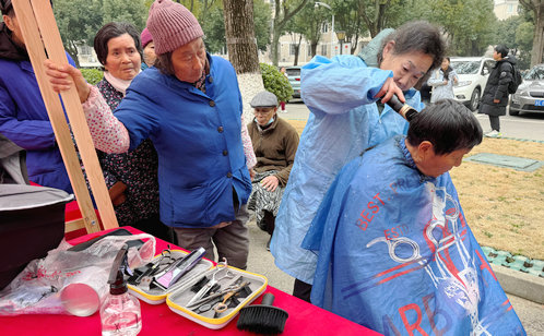 便民服務(wù)區(qū)里,人氣一路高漲,每一個攤位都藏著社區(qū)的貼心。書法愛好者揮毫潑墨,紅紙翻飛間,“歲歲平安”“闔家幸福”的春聯(lián)躍然紙上,墨香混著年味,讓居民把祝福帶回家;義剪攤位前,理發(fā)師細心地為老人修剪發(fā)型,“剪個利落的新發(fā)型,過年更精神!”一句家常話,瞬間拉近距離;磨剪刀師傅的砂輪飛速轉(zhuǎn)動,原本鈍澀的刀具重煥光亮。“家里的剪刀用了好幾年,磨一磨又能用上一陣子,太實用了!”居民們拿著磨好的刀具,臉上滿是笑意。
