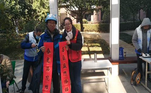 為了向仍然堅(jiān)守在工作崗位上的新業(yè)態(tài)新就業(yè)群體表達(dá)關(guān)心與慰問,沁苑社區(qū)黨總支貼心地準(zhǔn)備了暖“新”禮包放在活動(dòng)現(xiàn)場,送給快遞外賣小哥和家政人員。紅色管家志愿者們還特別準(zhǔn)備了對聯(lián)和福字,給新業(yè)態(tài)新就業(yè)群體送去新春的祝福。來小區(qū)派件的快遞小哥不僅可以享受理發(fā)、義診、法律咨詢等免費(fèi)服務(wù),還可以領(lǐng)取一份愛“新”滿滿的暖冬大禮包。