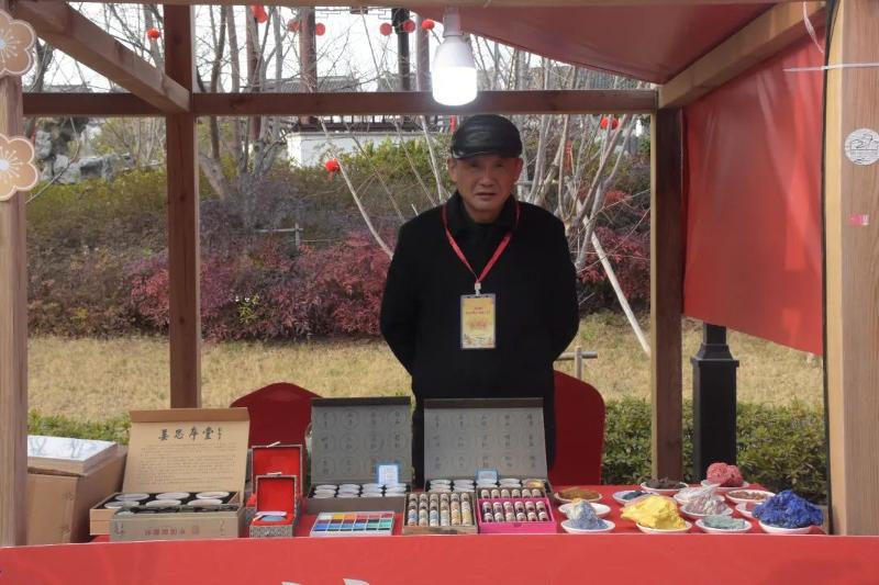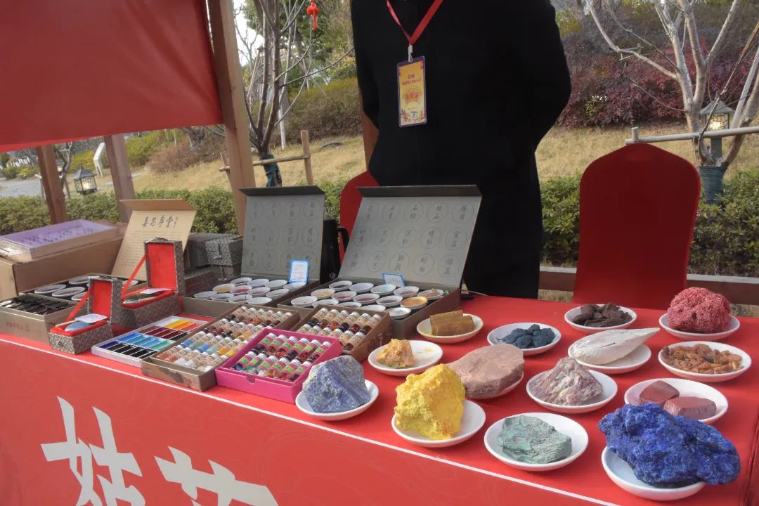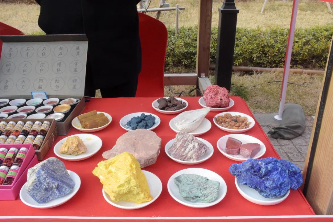 “這是藍(lán)銅礦,《千里江山圖》的青綠就是源自這種礦石。這是青金石、朱砂、瑪瑙、貝殼、藤黃、珊瑚、胭脂蟲……有些是礦物原料,有些是動(dòng)物原料,蓼藍(lán)草等則是植物原料。”在“非遺賀新春——古城過大年”全國主會(huì)場(chǎng)活動(dòng)暨蘇州古城過大年系列活動(dòng)的展示現(xiàn)場(chǎng),姜思序堂國畫顏料制作技藝非遺代表性傳承人張佰林正熱情地向圍觀的市民游客介紹著各色顏料的原材料。