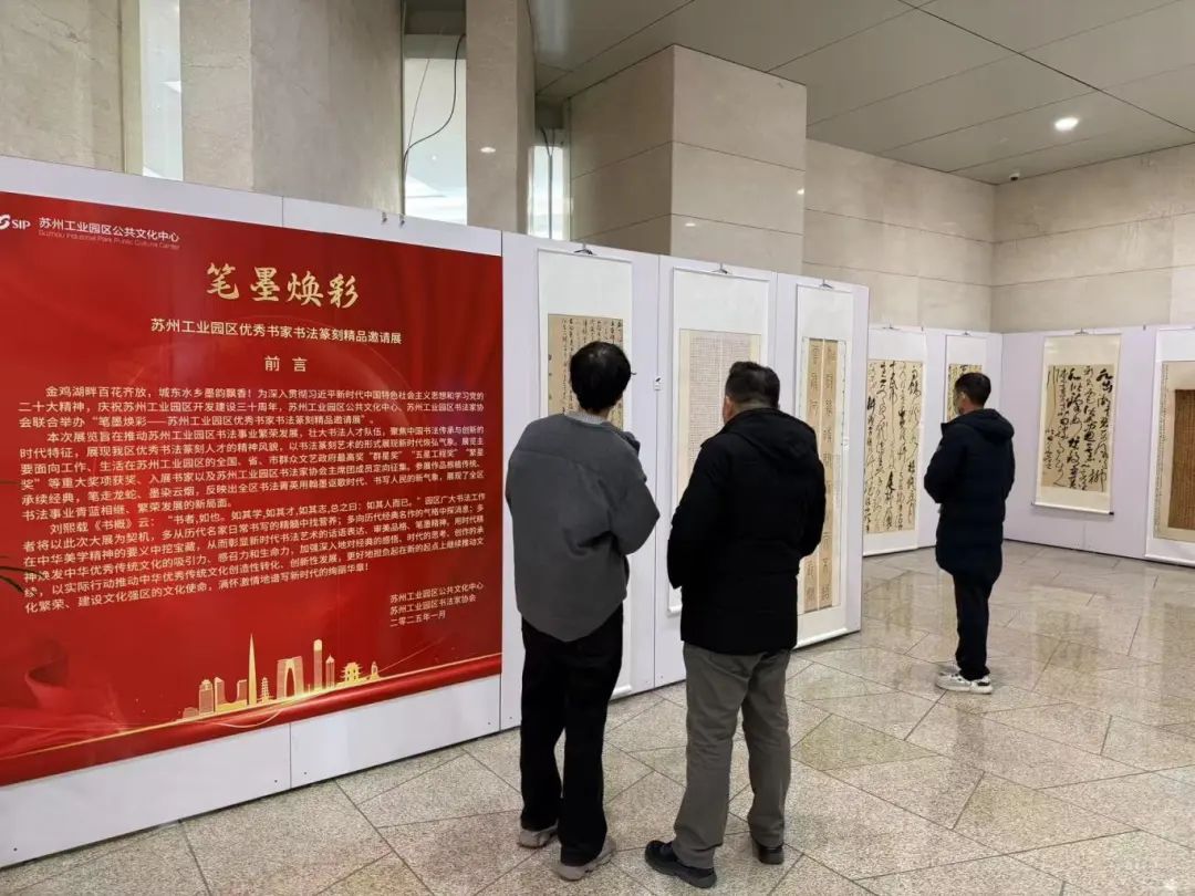 金雞湖畔,由園區(qū)公共文化中心、園區(qū)書法家協(xié)會(huì)聯(lián)合舉辦的筆墨煥彩——蘇州工業(yè)園區(qū)優(yōu)秀書家書法篆刻精品邀請(qǐng)展同樣墨韻飄香。