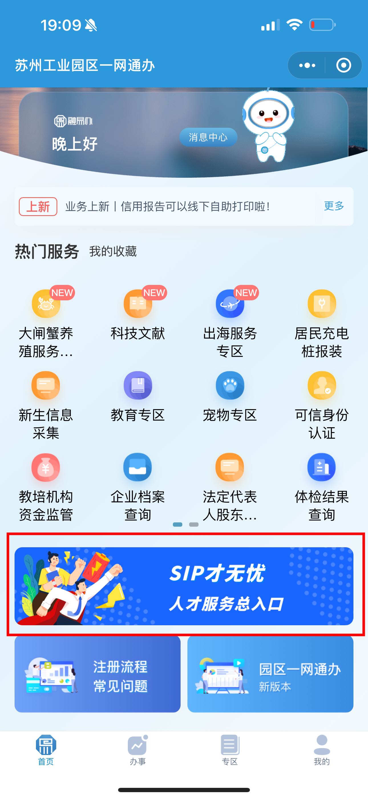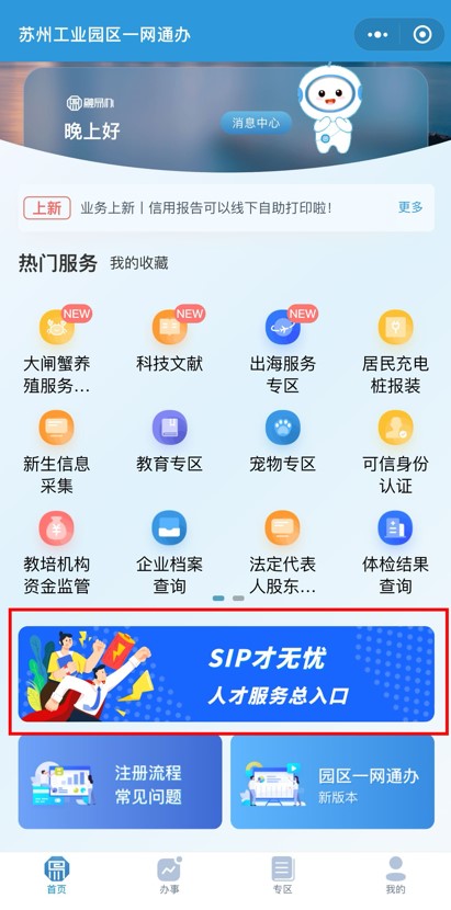 方式二:關(guān)注“蘇州工業(yè)園區(qū)發(fā)布”微信公眾號(hào),點(diǎn)擊下方“一網(wǎng)通辦”菜單欄,進(jìn)入后點(diǎn)擊“SIP才無(wú)憂”人才服務(wù)總?cè)肟凇?/p>