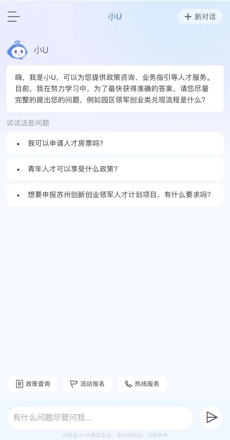 “SIP才無(wú)憂”深度聚焦提升人才的使用體驗(yàn),通過(guò)接入DeepSeek-R1“滿血版”,全新推出首個(gè)高智版AI助手“小U”,構(gòu)建智能化人才服務(wù)體系,實(shí)現(xiàn)“政策秒配、服務(wù)無(wú)界”。