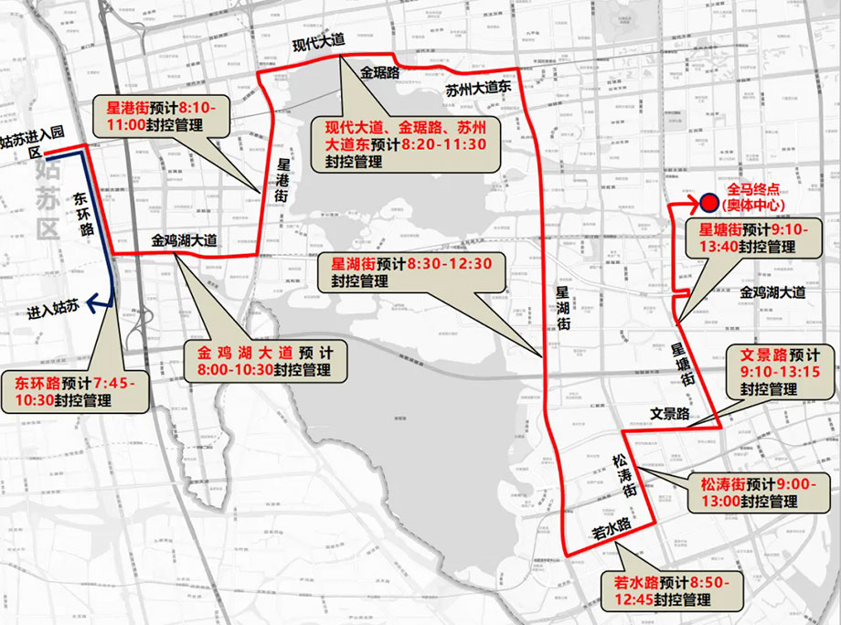 此次蘇馬,園區(qū)路線長(zhǎng)、范圍廣,為保障賽事進(jìn)行,同時(shí)最大化減少對(duì)市民游客出行的影響,園區(qū)賽段將分時(shí)分路段實(shí)施全封閉、半封閉、半幅封閉的臨時(shí)交通管控,同時(shí)針對(duì)婁葑片區(qū)、湖西CBD片區(qū)、湖西中茵皇冠周邊、湖東CWD片區(qū)、月亮灣片區(qū)、斜塘片區(qū)、蘇州大學(xué)附屬第四醫(yī)院(獨(dú)墅湖醫(yī)院)等區(qū)域,提供區(qū)域機(jī)動(dòng)車?yán)@行方案。園區(qū)相關(guān)酒店在公安等多部門的指導(dǎo)下,也提前準(zhǔn)備,積極做好出行提醒,讓市民游客充分感受到城市的熱度與溫度。