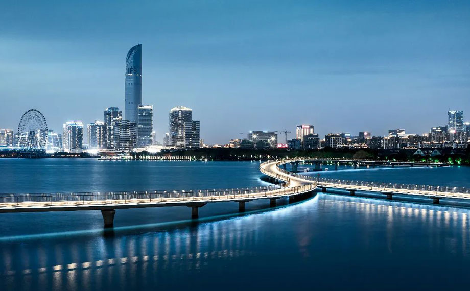 沿著賽道,金雞湖這顆城市明珠熠熠生輝。這里不僅有蘇州文化藝術(shù)中心、誠(chéng)品生活蘇州等文化地標(biāo),還有飛翔雕塑、環(huán)湖驛站等新晉網(wǎng)紅,更能一探“蘇州之眼”、蘇州當(dāng)代美術(shù)館的芳容。