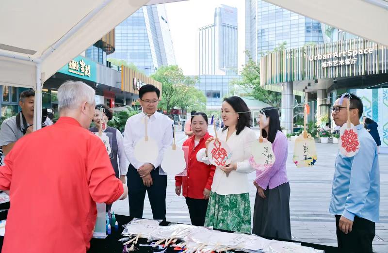 活動中,青年評彈演員朱江帶來以蘇州工業(yè)園區(qū)為背景的原創(chuàng)曲目《金雞起舞》,以現(xiàn)代藝術(shù)形式展現(xiàn)了園區(qū)的“古韻今風(fēng)”,將氣氛推向高潮。現(xiàn)場熱鬧非凡,市民游客不僅觀賞到了精美的緙絲藝術(shù)展,還積極參與了吹糖人、漆扇制作等互動體驗。這些端午傳統(tǒng)民俗活動讓市民在感受文化魅力的同時,也充分體驗到了節(jié)日的祥和氛圍。