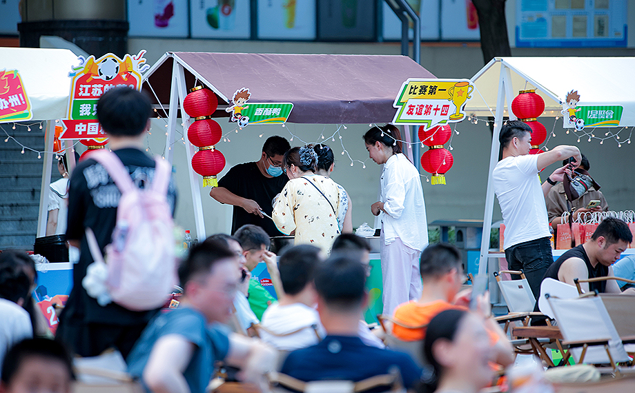 “近期,‘蘇超’聯賽持續火爆。我們以‘體育+美食+夜經濟’為核心,融合球迷觀賽、地方美食、文化展示等內容,豐富文體旅聯動產品,希望以賽事帶動消費,讓市民在觀賽之余享受美食、互動的樂趣,提升看賽體驗感?!爆F場相關負責人表示,未來,園區還將結合更多體育IP,推出類似活動,持續激活夜間經濟活力。