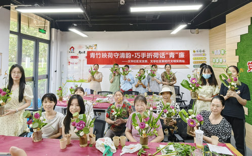 為進(jìn)一步弘揚(yáng)廉潔文化,營(yíng)造風(fēng)清氣正的社區(qū)氛圍,近日,文華社區(qū)組織轄區(qū)青年居民開展了“青竹映荷守清韻,巧手折荷話‘青’廉”主題插花活動(dòng)。在園藝?yán)蠋煹闹笇?dǎo)下,大家以竹為器、以荷為材,學(xué)習(xí)荷花的多種折法,以荷寄情,暢談對(duì)廉潔寓意的理解,不一會(huì)兒,一件件融合了“竹之節(jié)”與“荷之潔”的插花作品便呈現(xiàn)在眼前,既有自然之美,又傳遞出了廉潔自律的價(jià)值追求。以竹喻廉、以荷喻潔,活動(dòng)不僅提升了青年的審美與動(dòng)手能力,更讓廉潔理念以生動(dòng)可感的方式深入人心,讓廉潔文化從“文字”走向“生活”,從“說(shuō)教”變?yōu)椤肮睬椤?,為社區(qū)精神文明建設(shè)注入了清新活力。