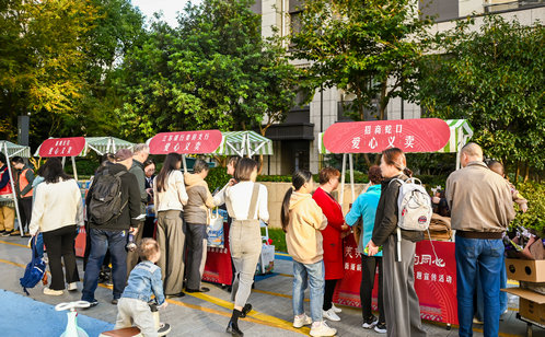 各民族不僅體現在文化認同上,也反映在鄰里互助與社區共建的實際行動中。本次活動中的愛心義賣市集,由社區聯合江蘇銀行與招商蛇口兩大共建單位共同組織,動員志愿者和居民將閑置物品轉化為公益資源,所得善款將用于幫扶西藏林周縣阿朗鄉。本次愛心義賣活動不僅實現了物質幫扶,更搭建起居民互動的平臺,在奉獻愛心過程中促進了各族群眾之間的情感交融。這一“文化體驗+公益實踐”的模式,拓展了民族團結宣傳工作的載體,也增強了社區治理凝聚力與向心力。