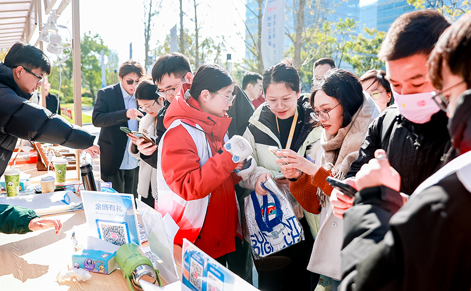 11月19日至20日,第七屆中新(蘇州)數字金融應用博覽會、2025金融科技大會在蘇州國際數據港召開。一場融合傳統韻味與數字活力的金博會數字金融市集同步熱鬧開市。市集以非遺手作、蘇式美食、數字潮玩等吸引大批市民駐足。在“數字金雞湖”平臺的全流程支持下,將金融科技的便捷融入逛展點滴。