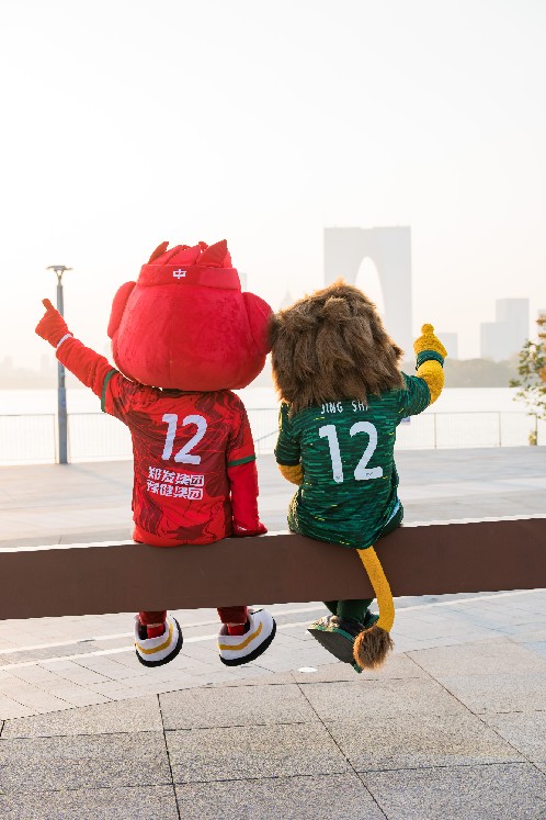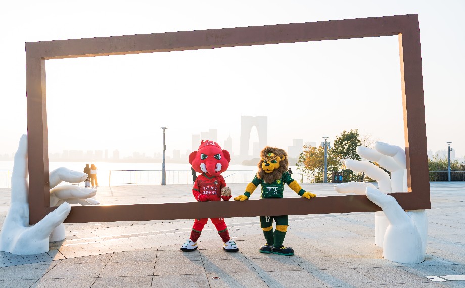 腳踏足球,北京國安的吉祥物“京獅”朝氣蓬勃,身上的12號球衣,將球隊(duì)與球迷緊緊相連。河南俱樂部的吉祥物“巴布”則以大象的形象和紅色主色調(diào),彰顯無畏、自信、堅(jiān)韌、拼搏的精神內(nèi)核。它們萌趣活力的形象在金雞湖畔留下這個(gè)秋末初冬的一份獨(dú)特記憶。