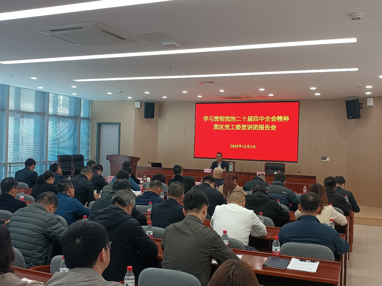 12月3日上午,學習貫徹黨的二十屆四中全會精神園區黨工委宣講團報告會在市政服務集團舉行。