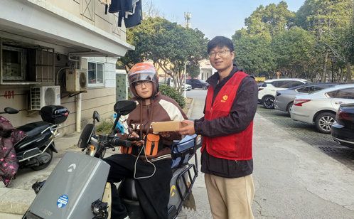 社區網格員與“紅色管家”志愿者一起將這些滿載著關懷與敬意的甜蜜禮物送到了附近的快遞驛站、外賣配送點,并用樸實的話語表達對他們的感謝與敬意:“平時都是你們為我們奔波送件,今天也嘗嘗我們親手做的小點心,辛苦了!”一句句溫暖的話語,一份份甜蜜的禮物,讓這些終日穿梭在城市街巷的“勤勞小蜜蜂”們倍感溫暖與感動。