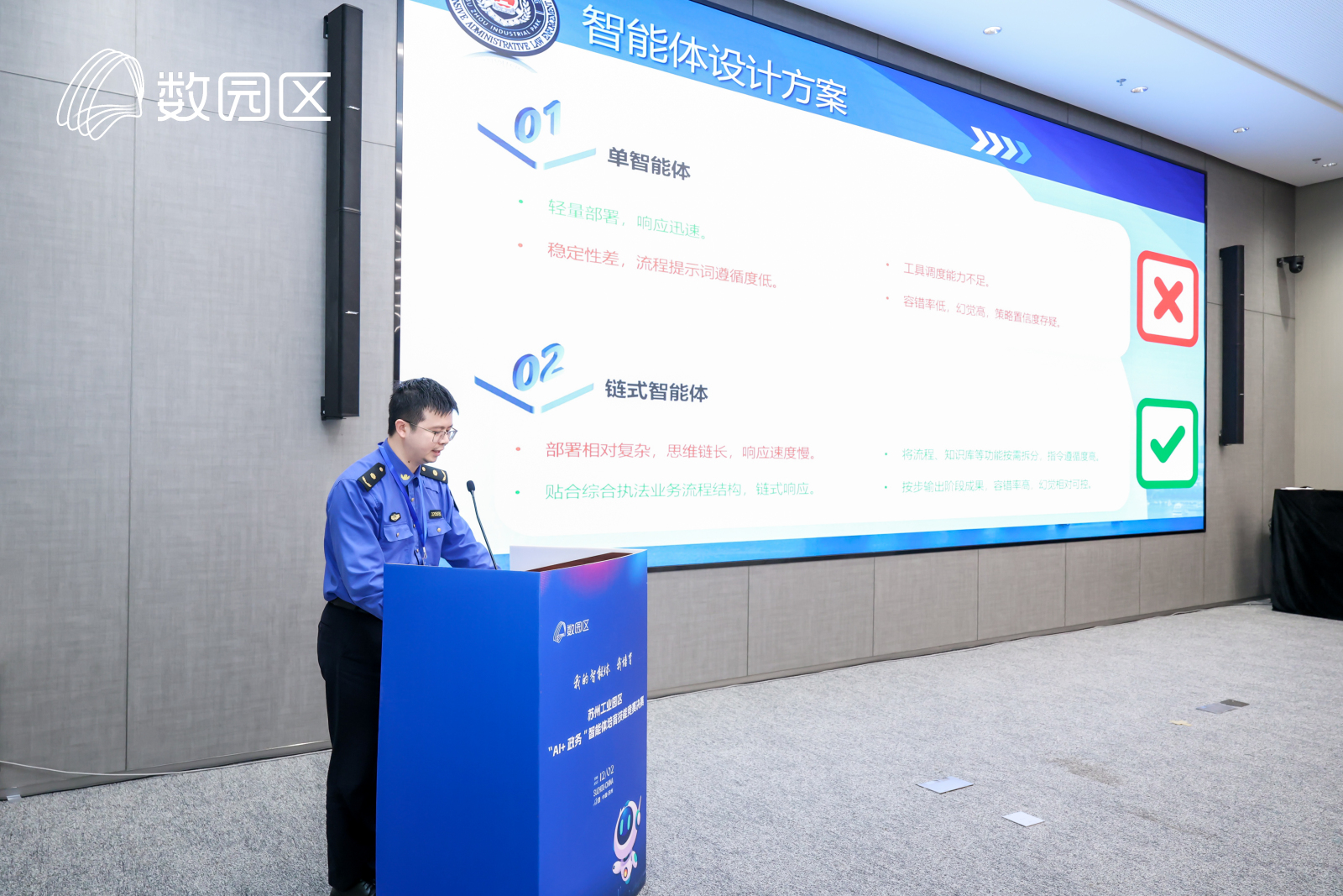 決賽現場,各參賽隊伍的政務智能體集中亮相、亮點紛呈。綜合行政執法局聚焦城市管理痛點、堵點,打造“綜合執法智能助手”,為基層執法注入科技新動能,榮獲大賽一等獎。