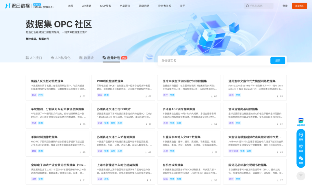 12月中旬,全國首個(gè)數(shù)據(jù)集線上OPC社區(qū)正式發(fā)布,聚合高質(zhì)量AI數(shù)據(jù)集與聚合OPC數(shù)據(jù)商城上線聚合數(shù)據(jù)官網(wǎng)(juhe.cn)。