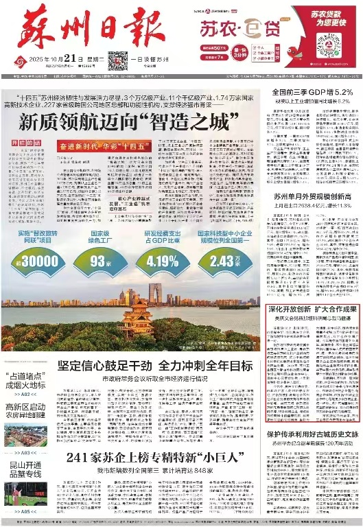 《蘇州日?qǐng)?bào)》2025年10月21日A01版