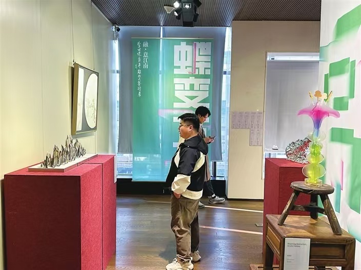 展覽分為“蝶美與共”“蝶舞共生”“蝶妙之門”“蝶變?nèi)f千”四個篇章,展現(xiàn)青年藝術(shù)家對江南文化的多元解讀。“本次展覽不僅是雕塑藝術(shù)的展示,更試圖構(gòu)建一個‘可生長的江南意象’。”吳笠安說。現(xiàn)場,青年藝術(shù)家們運(yùn)用金屬、玻璃鋼、樹脂等多元材料,以新穎的媒介與獨特的塑形語言,為理解江南、理解當(dāng)下提供嶄新的視覺注解。