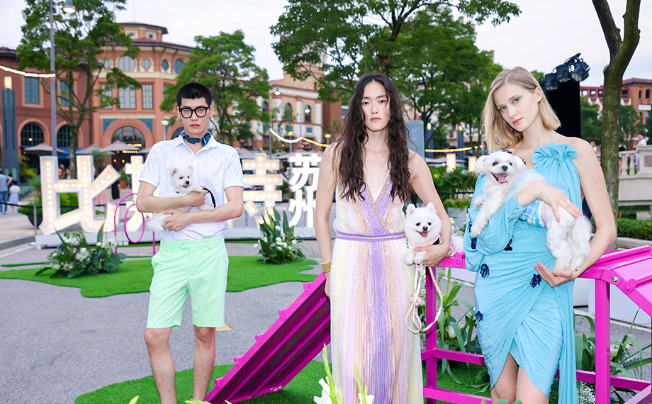 夜幕降臨,比斯特蘇州購物村的“萌寵樂游”主題秀場正上演著別開生面的時裝秀。煙花綻放中,模特們牽著寵物狗展示最新季時裝,引得觀眾陣陣歡呼。