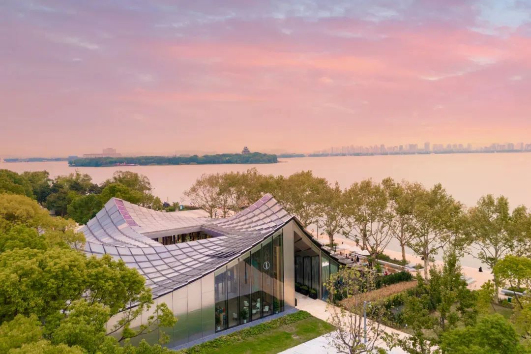 李公堤旁的金雞驛05,將雕塑動態(tài)感的竹飾面與幾何外觀結(jié)合,茶室與湖景露臺構(gòu)成鬧中取靜的雅致天地,盡顯東方美學(xué)的內(nèi)斂與深邃。驛站定期更新茶文化典籍,宋式設(shè)計的雅致氛圍是約上好友品茗的絕佳場所。這里曾舉辦“竹林養(yǎng)心錄”玉潤津生茶會,特邀茶學(xué)專家講解茶道與養(yǎng)生知識,竹間茶席與湖風(fēng)相映,讓參與者在茶香中感受東方生活美學(xué)。