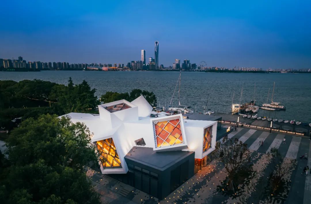 由磯崎新與胡倩工作室設(shè)計的金雞驛02,以“蘇州色卡”打造現(xiàn)代感空間,黑盒子基座搭配白色筒體,橙色點綴彰顯活力。驛站聯(lián)動風(fēng)之園碼頭提供帆船、槳板、皮劃艇等水上體驗,市民游客可由專業(yè)教練帶領(lǐng)解鎖“乘風(fēng)破浪”的快樂;運動后,illy咖啡吧是絕佳的補給站,冰飲與“金雞海”構(gòu)成愜意組合;這里還不定期舉辦水上社群活動,讓青春活力持續(xù)綻放。