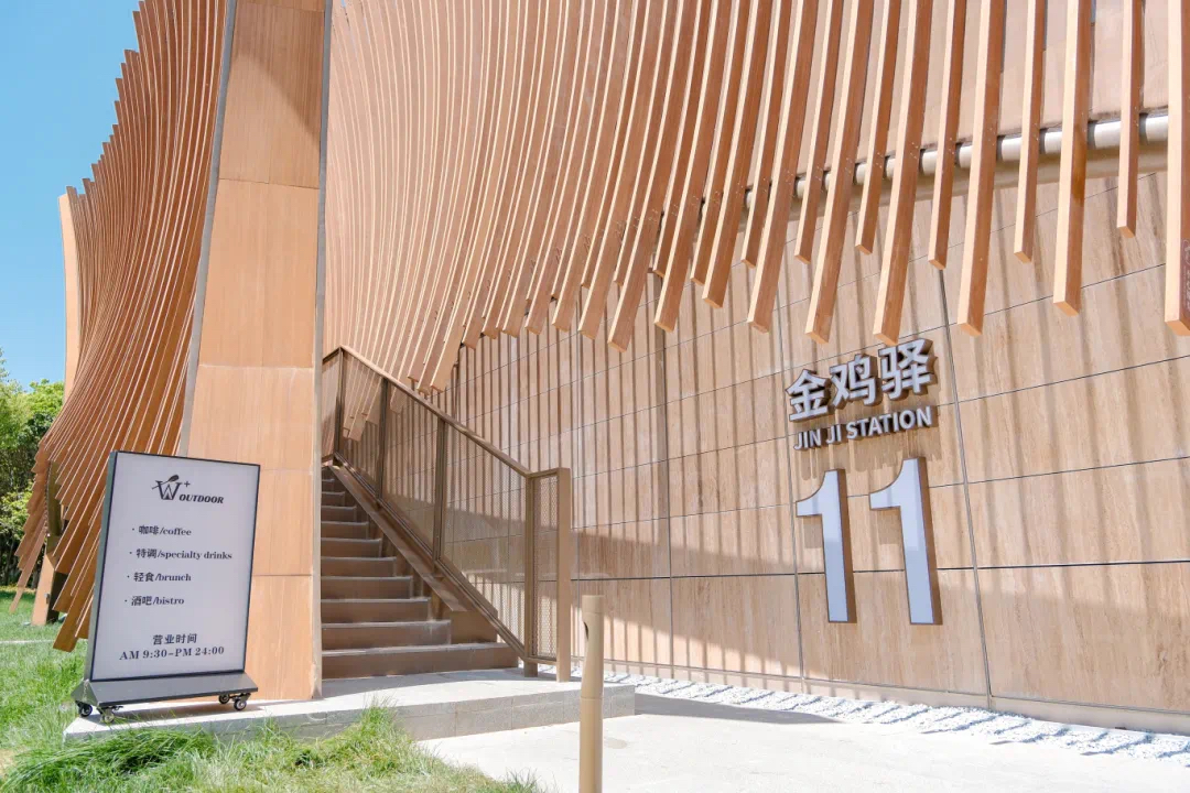 來到掩映在綠化中的金雞驛11,其以竹飾面漸變曲面呼應(yīng)周邊雕塑,將自然野趣與高端體驗巧妙融合。作為戶外露營主題驛站,這里提供裝備租賃、探險咨詢與24小時補給,可滿足從新手到資深玩家的多樣需求。國際品牌也偏愛這片自然空間,“為愛奔馳”梅賽德斯-奔馳私享薈曾在此舉辦,參與者在享受精美茶歇的同時聆聽專業(yè)講解,高端體驗與露營氛圍巧妙融合,帶來獨特的輕奢體驗。