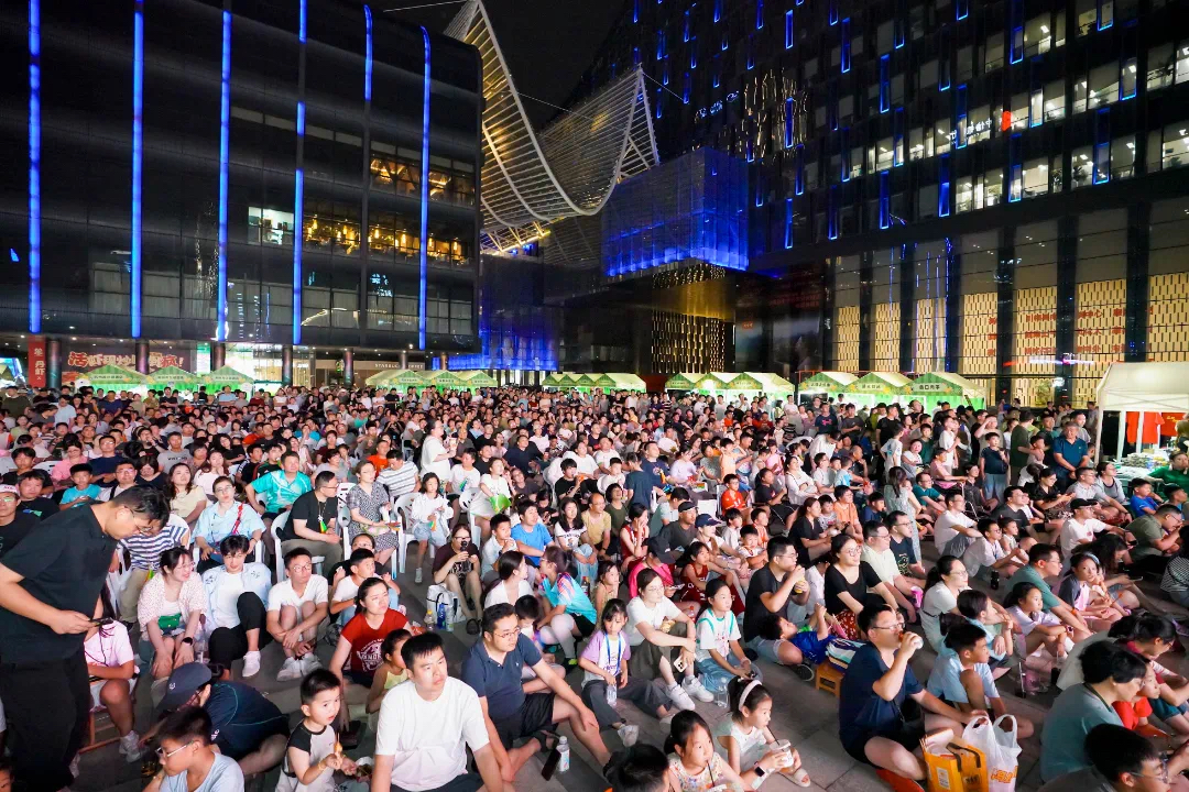 今年6月的一個周末傍晚,園區文星廣場逐漸熱鬧起來。巨大的投影屏幕前,聚集了不少身穿球衣的球迷。
