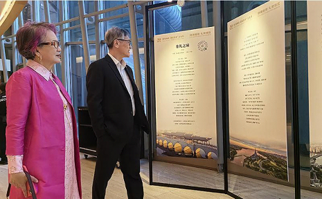 The exhibition of 16 groups of works by Chinese and Singaporean poets and Suzhou-native photographers was held at Esplanade - Theatres on the Bay, showcasing the high-quality development of Suzhou to the visitors.