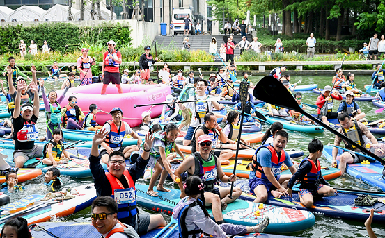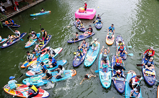 The 2025 SIP Central River Trendy Sports Meet ? Family Paddleboarding Challenge was held at Central (Zhongyang) River in SIP on Sept 13, when 100 families showcased their paddleboarding skills and excellent teamwork.