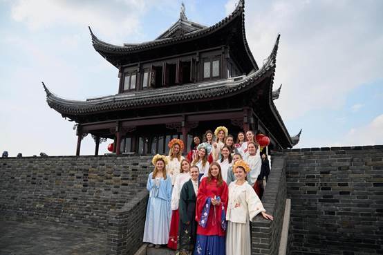 During the event, the participating students in traditional Chinese costumes visited  Suzhou City Wall Museum, enjoyed a holistic picture of Suzhou from the top of the Xiangmen Gate and listened to the tour guide’s introduction to the history of the city.