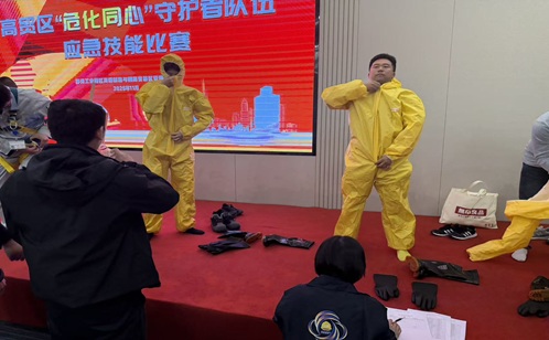 11月7日,高貿區(qū)分聯(lián)盟舉辦應急技能比賽,11支“危化同心”守護者隊伍及7支行業(yè)、街區(qū)守護者隊伍同臺競技、各展所長,上演了一場精彩絕倫的“技能大比拼”。
