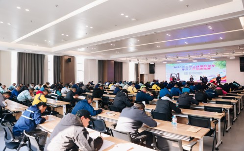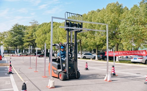 競賽設(shè)置預(yù)賽與決賽兩個階段,全方位檢驗選手綜合素養(yǎng)。預(yù)賽環(huán)節(jié)采用“理論+實操”的考核模式:理論測試涵蓋叉車安全操作規(guī)程、設(shè)備日常維護、應(yīng)急處置流程及相關(guān)法律法規(guī)知識,重點考察選手安全理論功底與合規(guī)意識;實操項目為電動平衡重叉車帶托盤競速繞樁,選手需在5分鐘內(nèi)完成“叉取托盤—轉(zhuǎn)運堆疊—指定存放—倒庫停車”全流程,考驗精準(zhǔn)操控與高效作業(yè)能力。經(jīng)綜合評定,40名選手憑借過硬實力脫穎而出,晉級決賽。