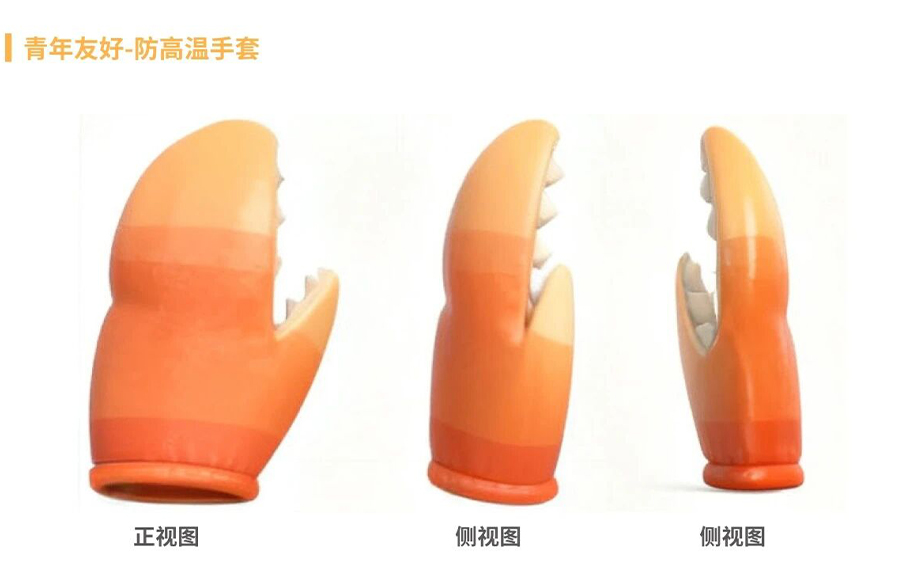 作品緊扣“實用主義”,深刻理解年輕人對“顏值與實力并存”的追求。防高溫手套內(nèi)部采用高效隔熱材料,外部防滑耐磨;止汗帶主體使用高彈、吸汗快干面料,確保功能性與舒適度。螃蟹背包造型萌趣,構(gòu)成了一個積極快樂的卡通形象,讓孩子能夠在出行中編織自己與“蟹寶”的故事。